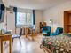 cucina incassata, con finestra, ventola, piano cottura Ceran (2 piastre), forno con microonde integrato, Macchina per caffé a capsule, frigorifero con congelatore, completo di piatti