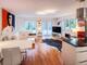 soggiorno/sala da pranzo con divano di pelle e gruppo pranzo