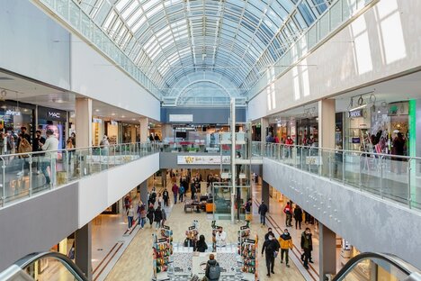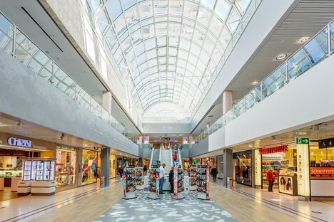 Strada commerciale con molti piccoli negozi, centro commerciale "OEZ".