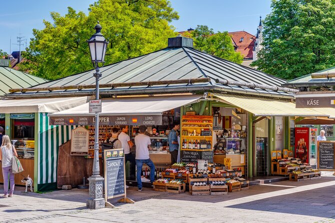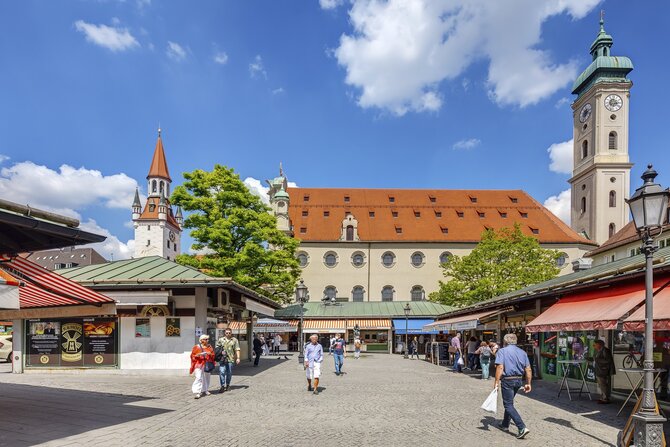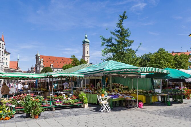 Nel 1807, il re Massimiliano I fece spostare il mercato da Marienplatz, diventata troppo piccola, nella zona tra Heilig-Geist-Kirche e Frauenstraße. Dopo le pesanti distruzioni della guerra, il mercato è stato ripristinato. Una festa per i sensi si apre qui ogni mattina per gli intenditori. Qui sono in vendita prodotti di alta qualità provenienti da tutto il mondo e una ricca selezione - da carne e pesce a specialità di formaggio, verdure biologiche, frutta, miele e fiori. Sotto all' albero della cuccagna e all'ombra dei castagni, i visitatori troveranno non solo delizie come l'obazda, le salsicce bianche e il pollo arrosto per il loro benessere fisico, ma anche accoglienti birrerie e caffè.