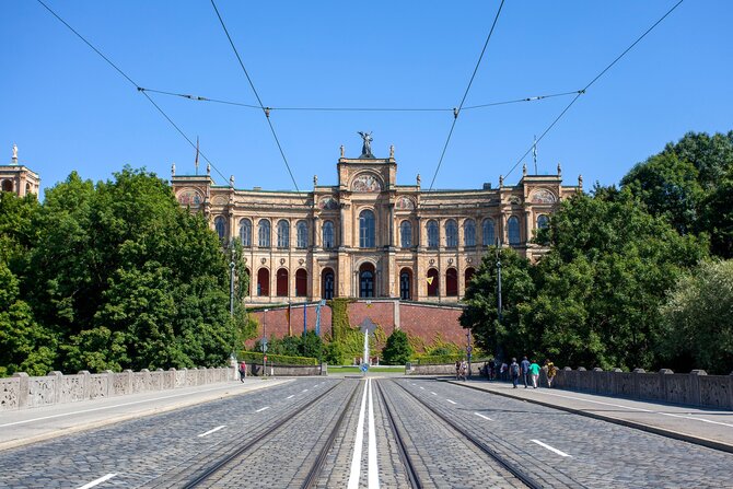 Il nuovo municipio fu costruito tra il 1867 e il 1909 secondo i progetti dell'architetto di Graz Georg Hauberrisser. L'edificio monumentale in stile neogotico racchiude sei cortili interni. L'interno dell'edificio è magnifico come la facciata. Oltre alla vetrata con la "Patrona Bavariae", sono particolarmente degne di nota la biblioteca giuridica e la "Piccola sala conferenze".