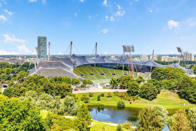 Per le Olimpiadi estive del 1972, il sito olimpico di 3 chilometri quadrati fu costruito sull'Oberwiesenfeld, che in passato fu utilizzato come campo di esercitazione e poi come aeroporto. Dalle macerie delle case distrutte durante la guerra, migliaia di artigiani hanno creato in quattro anni un attraente paesaggio collinare con un lago artificiale, viali ed edifici imponenti come il tetto a tenda ricurvo in filigrana e arioso che si estende sullo Stadio Olimpico, la Sala Olimpica e la piscina. Il concetto di mantenere il sito utilizzabile dopo i giochi è stato ben realizzato: il Villaggio Olimpico è utilizzato soprattutto come residenza per studenti, lo stadio e la Sala Olimpica ospitano una grande varietà di eventi, il parco e la piscina sono un'area ricreativa molto apprezzata dai cittadini di Monaco. I progetti per la copertura completa dello Stadio Olimpico per i Mondiali di calcio del 2006, al fine di soddisfare i nuovi standard internazionali, sono stati abbandonati a favore dell'estetica architettonica. Invece, è stato costruito un nuovo stadio per la famosa squadra del Bayern Monaco. Il Parco Olimpico non è solo un luogo dove fare lunghe passeggiate - gite in barca a remi sul lago olimpico, concerti, eventi sportivi, congressi e balli nella sala olimpica, pattinaggio e free climbing e la bellissima piscina coperta con cinque vasche, saune, trampolini e un ampio prato per prendere il sole offrono una vasta gamma di attività per il tempo libero per grandi e piccini. Non si deve assolutamente rinunciare ad una visita alla Torre Olimpica alta 290 m. Due veloci ascensori portano i visitatori alla piattaforma panoramica e al ristorante girevole, dove possono godere non solo di un'ottima vista panoramica - fino alle Alpi con il bel tempo - ma anche di un'ottima cucina.