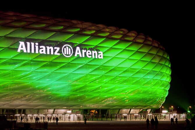 Dalla sua apertura nel 2005, l'Allianz Arena è già diventata una sorta di punto di riferimento per Monaco di Baviera. Progettato come un puro stadio di calcio, lo stadio a nord di Monaco può ospitare fino a 70.000 visitatori e serve come sede per le partite in casa dell'FC Bayern e del TSV 1860 Monaco. Oltre al campo da calcio, l'Allianz Arena ospita anche un cafè, un cinema e una mostra sul FC Bayern. Le visite guidate giornaliere offrono ai visitatori una visione più approfondita dietro le quinte dell'arena e un' esperienza interattiva col FC Bayern. L'Allianz Arena è nota anche per la sua caratteristica facciata di cuscini in lamina, che possono essere illuminati singolarmente a seconda dell'occasione. Una visita qui è un must per tutti gli appassionati di calcio!