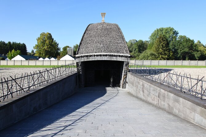 Nel 1933 Heinrich Himmler costruì il primo campo di concentramento tedesco a Dachau. Le regole, le strutture organizzative e la divisione in un campo di prigionia strettamente protetto e in un'area di comando per le SS, che fu istituita dal comandante del campo Theodor Eicke, furono esemplari per tutti gli altri campi di concentramento tedeschi. All'inizio furono imprigionati qui soprattutto gli oppositori politici del regime, poi si aggiunsero vari gruppi come ebrei, omosessuali, zingari o ecclesiastici, soprattutto dei territori orientali occupati. Un totale di 200.000 persone sono state imprigionate nel campo originariamente previsto per 5.000 persone. I prigionieri erano costretti a lavorare - sempre più spesso nell'industria degli armamenti tedesca - in condizioni barbare o abusati per esperimenti umani. Ben oltre 30.000 persone sono morte di una morte agonizzante o sono morte durante i trasporti, le epidemie, le torture o le esecuzioni di massa. Il 29 aprile 1945 il campo di concentramento fu liberato da unità dell'esercito statunitense. Il campo è stato convertito in un monumento commemorativo dopo la guerra. Oltre agli alloggi dei detenuti, al crematorio e al bunker, è possibile vedere numerose fotografie e filmati.