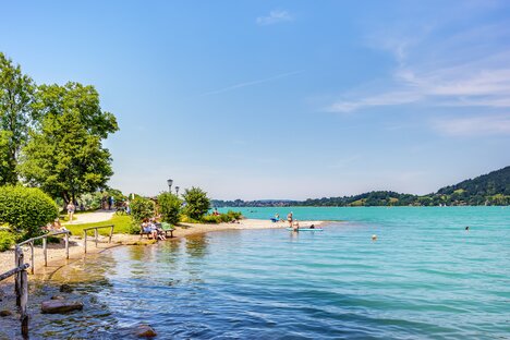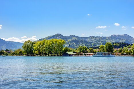 Il lago Tegernsee è uno dei laghi più puliti della Germania ed è molto popolare non solo per questo motivo. Questo è particolarmente evidente quando il sole splende sulla superficie dell'acqua e tutto il lago comincia a brillare.
